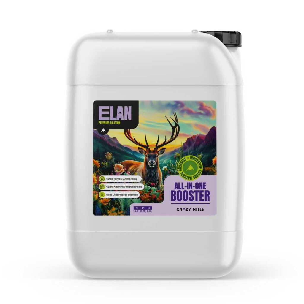 ELAN ist das Herzstück von Crazy Hills eine einzigartige, natürliche Komplettlösung für deinen Anbau. Mit ausgewählten Inhaltsstoffen wie Aminosäuren, kaltgepresstem Algenextrakt, Fulvo- und Huminsäuren, Vitaminen und Kohlenhydraten versorgt ELAN deine Pflanzen von der Wurzel bis zur Blüte mit allem, was sie brauchen.